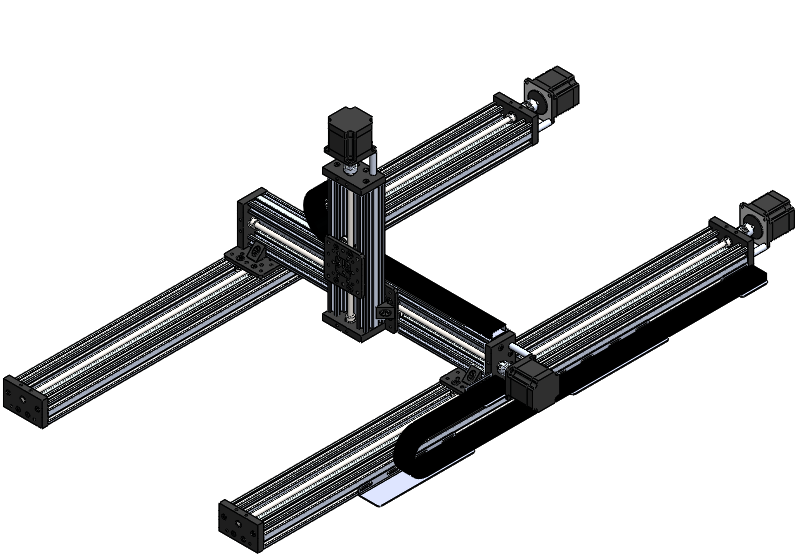 This XYZ-Double Rails Gantry system uses two linear actuators on the X-axis, a single linear actuator on the Y-axis, and one actuator on the Z-axis for movement. This system is perfect for a variety of applications. The length of the actuators is 1000mm, 500mm, and 250mm.