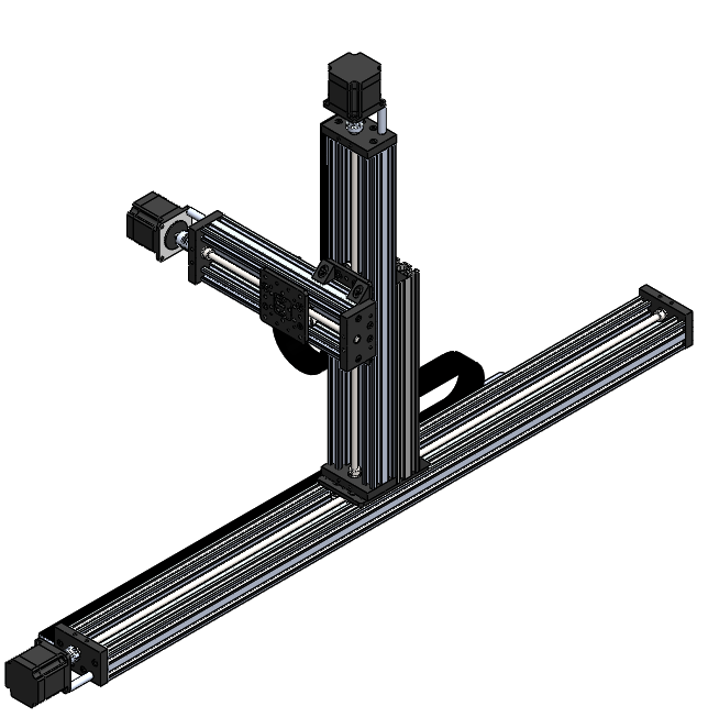 This XYZ-Single Rails Gantry system uses single linear actuators on the X, Y, and Z axes for movement in the respective directions. This system is perfect for a variety of applications. The length of the actuators is 1000mm,250mm, and 500mm.