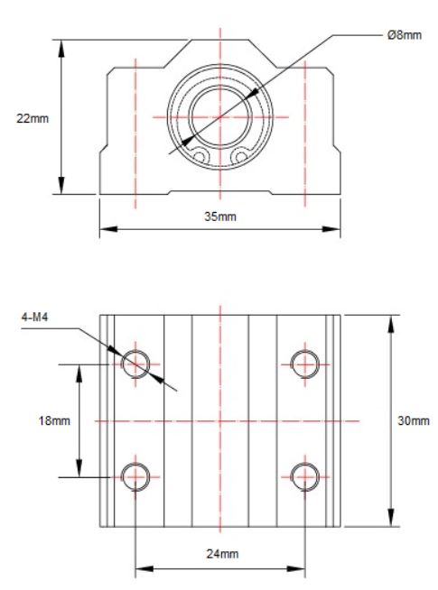 The SCS8UU Linear Bearing Block (Pillow Block) is used to slide along a 8mm smooth rod. These have a 4mm x 30mm platform and four holes tapped for M4 machine screws – so you can attach whatever you need.