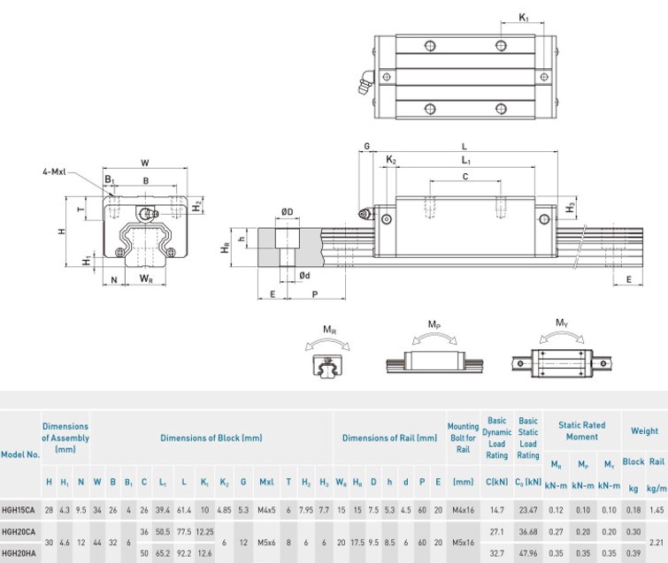 • HGR Bearings slide along the Rail using Rolling Circulation System of Steel Balls