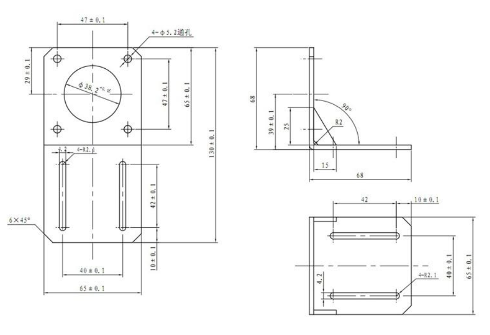 The NEMA 23Motor Right Angle Mounting Bracket is designed to fit NEMA 23 stepper motors. This black bracket is made from 3mm-thick coated steel and is durable and easy to install.