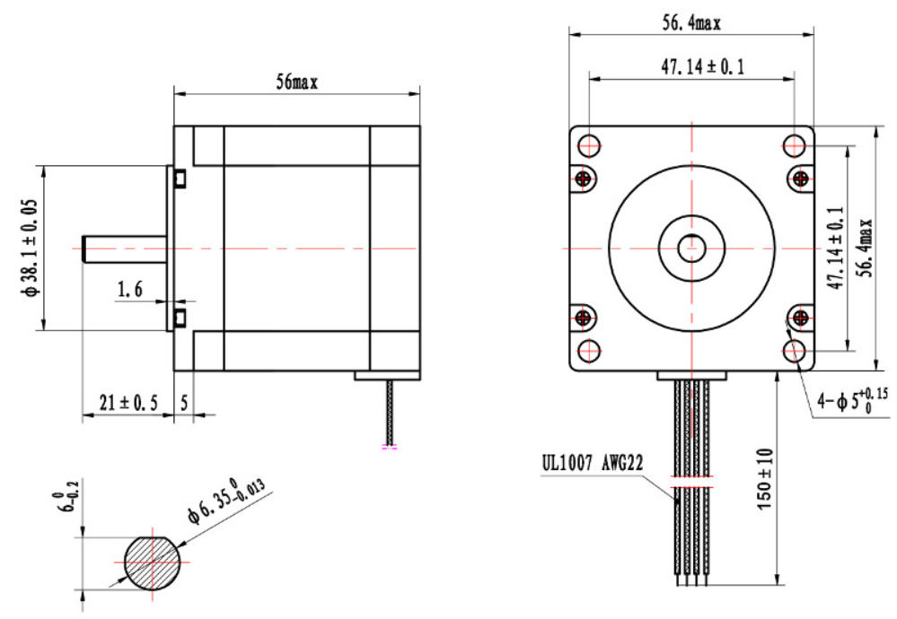 Looking for a powerful and reliable stepper motor for your next project? Check out our Standard NEMA23 stepper motor. With a holding torque of 1.26N.m, it's perfect for most of your machines. It comes with a 150mm lead and a 4-pin EDG connector for easy connection.