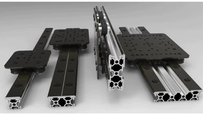 These V-Slot Modular Actuator End Mounts create belt-driven linear actuators when used with V-Slot Aluminium Extrusion. By mounting both a Nema 17 Stepper Motor and a Smooth Idler Pulley, you can create a linear actuator for your specific project needs.